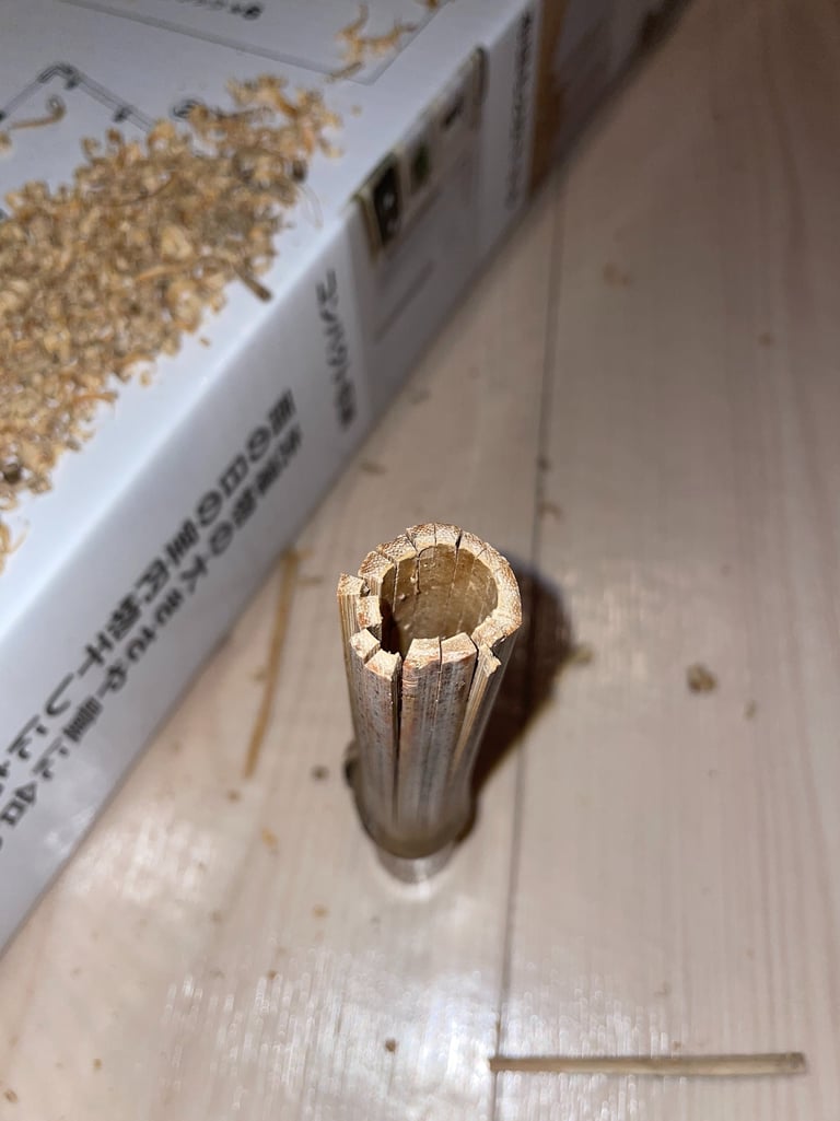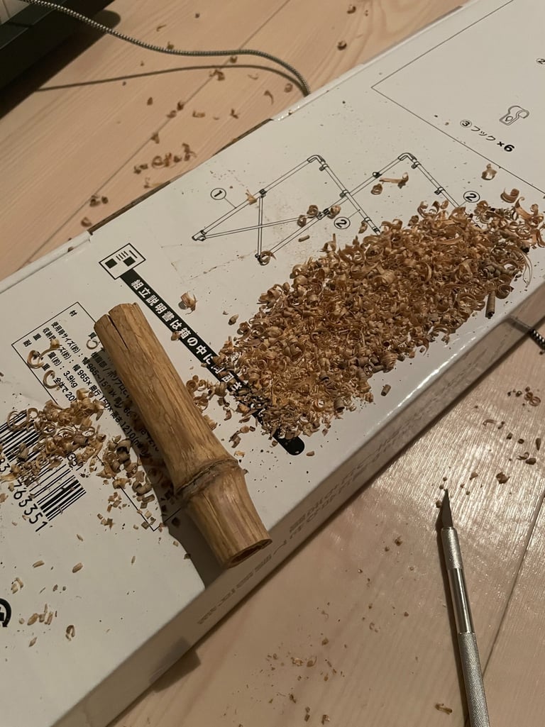 I tried soaking it in boiling water to get the tines soft enough to bend, I tried carving it slowly, I tried everything. In the end, I understood the reason why professional Japanese whisk makers take over two decades before they can say they've mastered the craft.